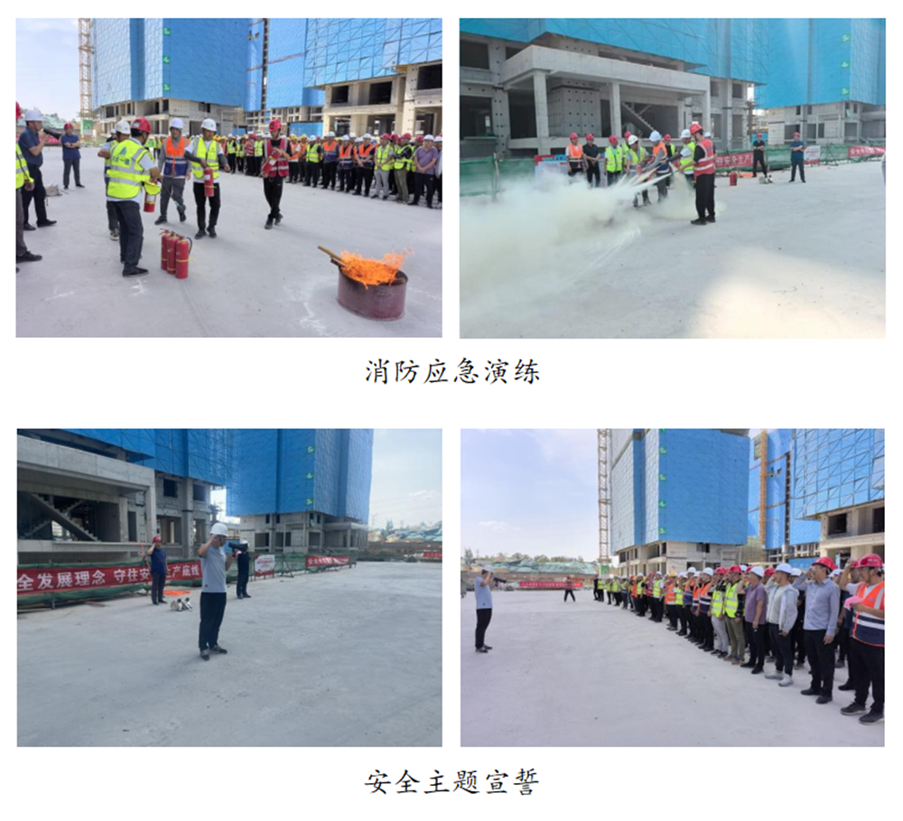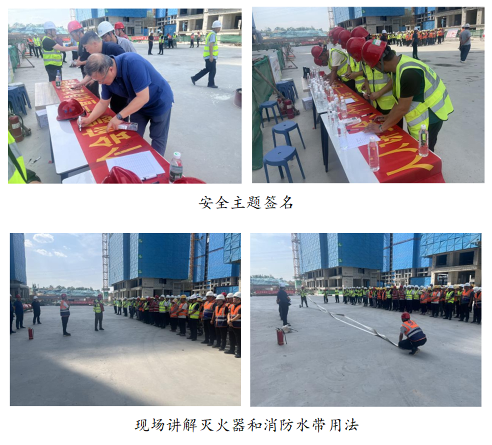 活动期间,大家积极参与安全主题签名和主题宣誓,讲解员现场讲解消防水带和灭火器的用法,解答安全生产相关知识,并开展了消防实战演练。星空体育登录-星空体育平台(中国)分管安全生产的总经理助理黄志澎作重要讲话,强调了安全生产的重要性,要求各单位扎实做好今年防汛工作,并为一线工人发放防暑降温药品和安全知识手册200套。