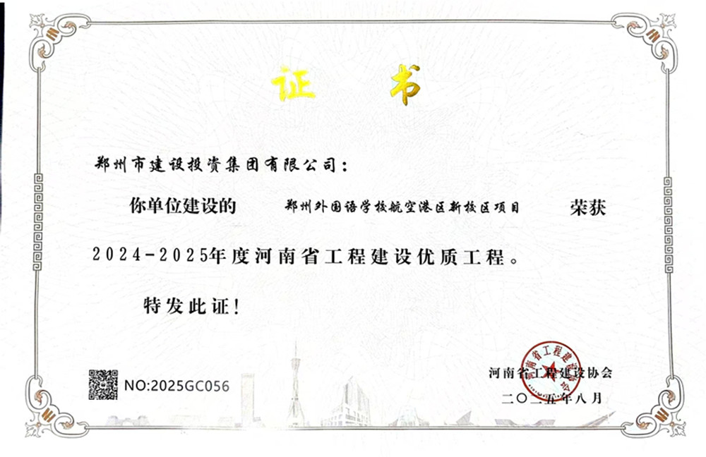 近日,由星空体育登录-星空体育平台(中国)代建的郑州外国语学校航空港区新校区项目荣获2024-2025年度河南省工程建设优质工程荣誉。